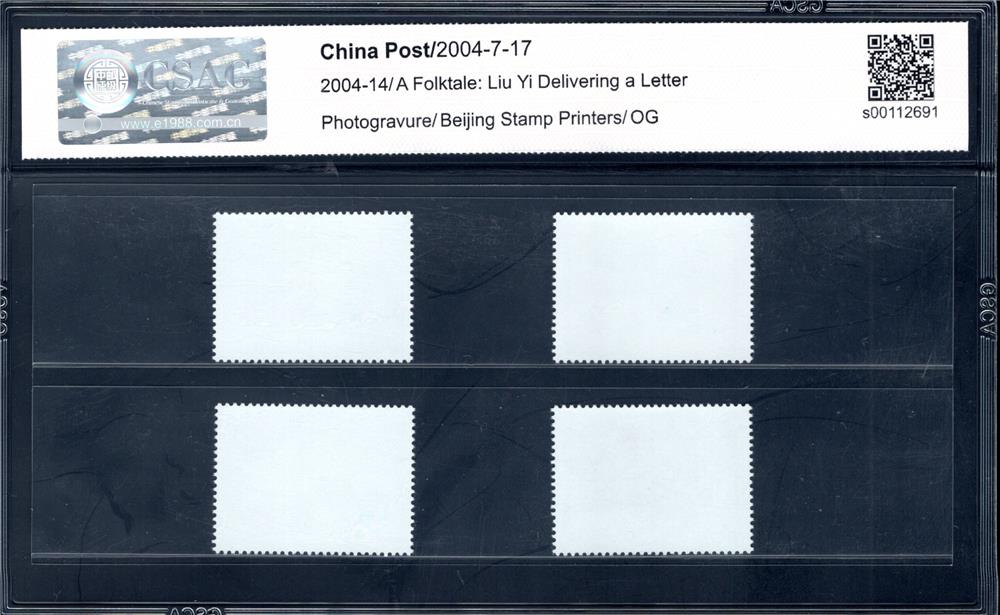 国家邮政局定于2004年7月17日发行《民间传说-柳毅传书》特种邮票1套4枚。