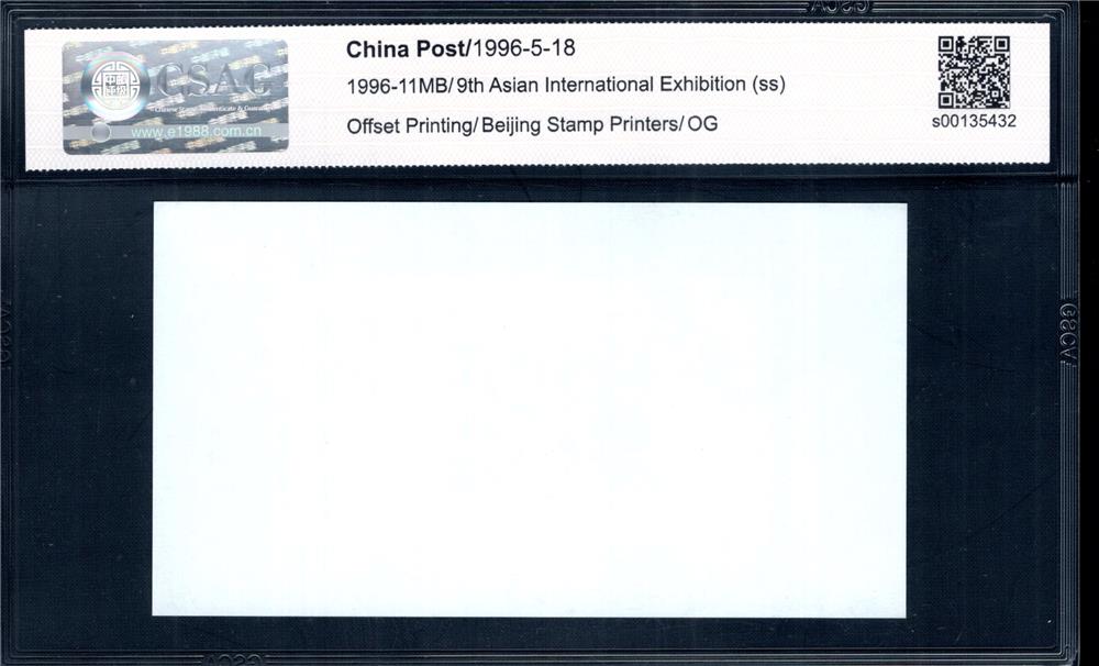 第九届亚洲国际邮展于1996年5月18日至24日,在中国首都北京举行,这是为纪念我国邮政开办100周年而举办的,也是自举办亚洲邮展以来规模最大的一次。我国首次并成功地举办了这次邮展,促进了我国与亚太地区以及世界其它各国集邮界的相互交流,共同推进国际集邮活动的进一步发展,并为1999年在我国举办世界邮展积累了经验。
